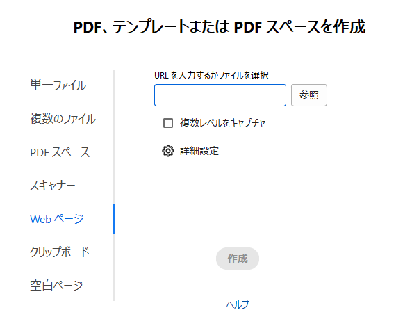 URLを入力するフォームが現れますのでそこにPDF化したいページのURLを入力して「作成」をクリック